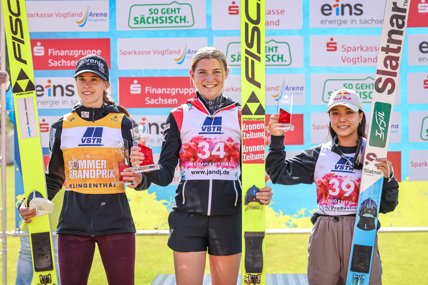 Marita Kramer triumphed in the final competition of the FIS Grand Prix at the Vogtland Arena (HS140) in Klingenthal. The Austrian athlete in the first round landed on 128 meters and in the final set a new hill record (141.5 m). Ursa Bogataj was second and Sara Takanashi finished third.