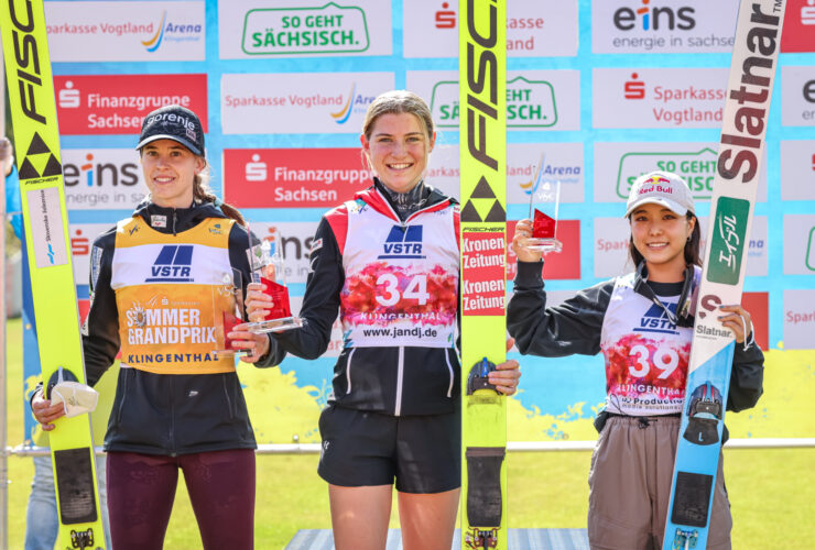 Ursa Bogataj triumphed in the final competition of the FIS Grand Prix at the Vogtland Arena (HS140) in Klingenthal. The Slovenian jumped 130.5 m and 131 m. Ema Klinec finished second and Selina Freitag was third. Ursa Bogataj was in the lead after the first round. The winner of the FIS Grand Prix overall standings reached 130.5 meters and was ...